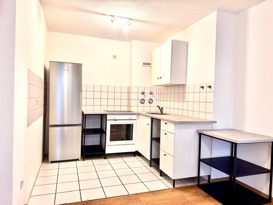 Über einen kleinen Eingangsbereich betreten Sie diese Wohnung und befinden sich direkt im offen gehaltenen Wohn-/Essbereich mit halb offener Küche.